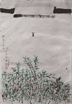 吴冠中共有兄弟姐妹六七人,《秋瑾故居》作品的上方恰好有七只燕子,其中一只孤零零地背向姊妹兄弟伫立在另外一条线上,她应该是吴冠中先生心里最爱的小妹的画中的化身。“谁家大宅院,飞尽堂前燕,白头归未得,梦里望江南”,我们从这幅画中能够感受到吴冠中先生创作时内心在泣血的痛。