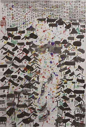 在20 世纪80 年代,吴冠中的国画发生重要的转变,他利用30 年断断续续的油画写生与创作经验,把他对形式美与抽象美、直觉与错觉的感触大量落实到水墨实践上,完成了诸多作品。这其中的《秋瑾故居》是他的成功之作,亦是他具有典型性和代表性的作品之一。